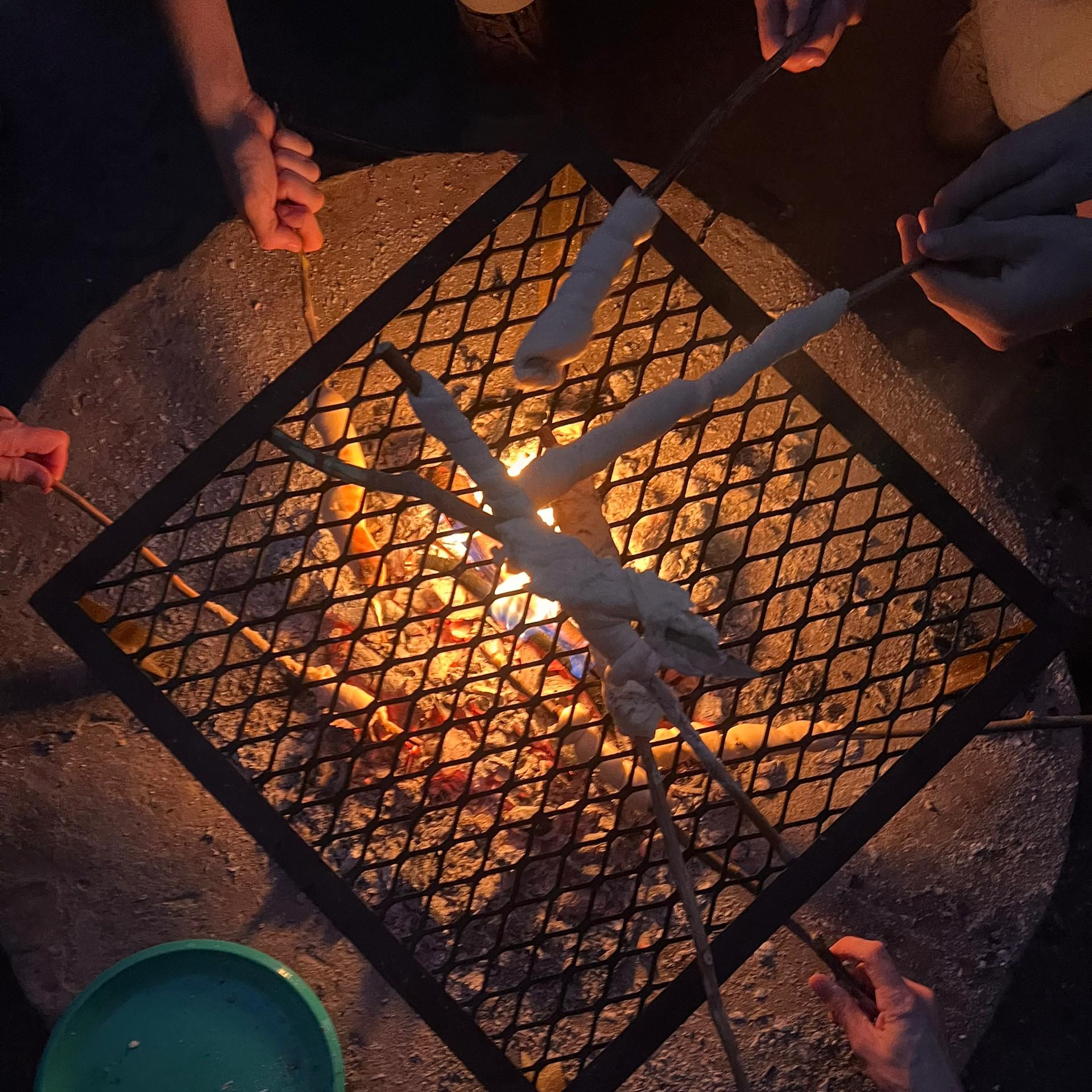 Wir machen Schlangenbrot, kochen Nshima (lokales Maismehl-Gericht) mit Kohl.