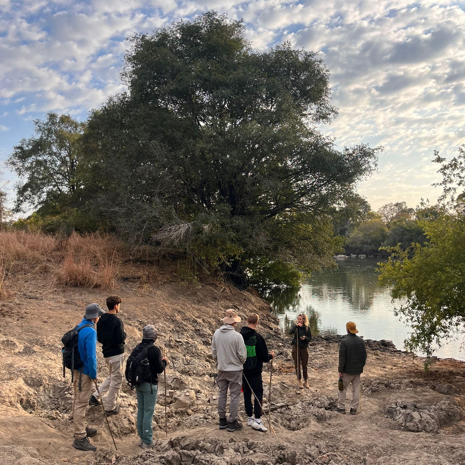 Also gut, Tag 1. Ich bereite mich auf meine Aktivität mit Gruppe 1 vor. Während die anderen sich für den Game Drive warm einpacken oder aufs Boot hüpfen, bin ich mit meinen Pyjama-Tarzans zu Fuss unterwegs. Walking Safari-Time. Und ich bin nicht allein – Ranger C ist dabei.