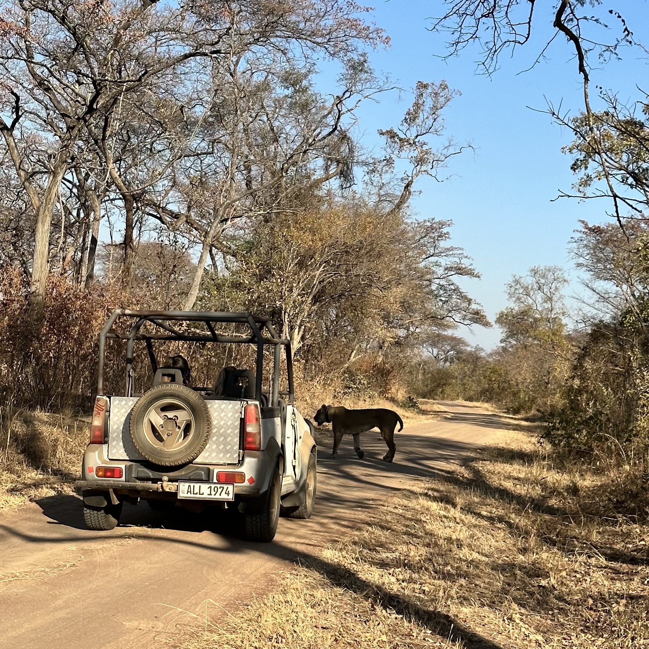 Das Auto? Natürlich gerade beim Chef, der den Leoparden entdeckt hat. Also schnappen sich meine Chefin und ich kurzerhand den Suzuki Jimny – ohne Dach, ohne Türen. Geil? Super geil!